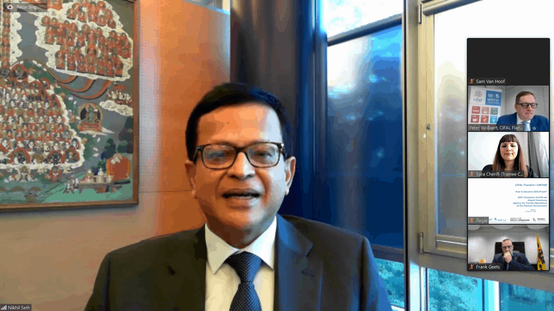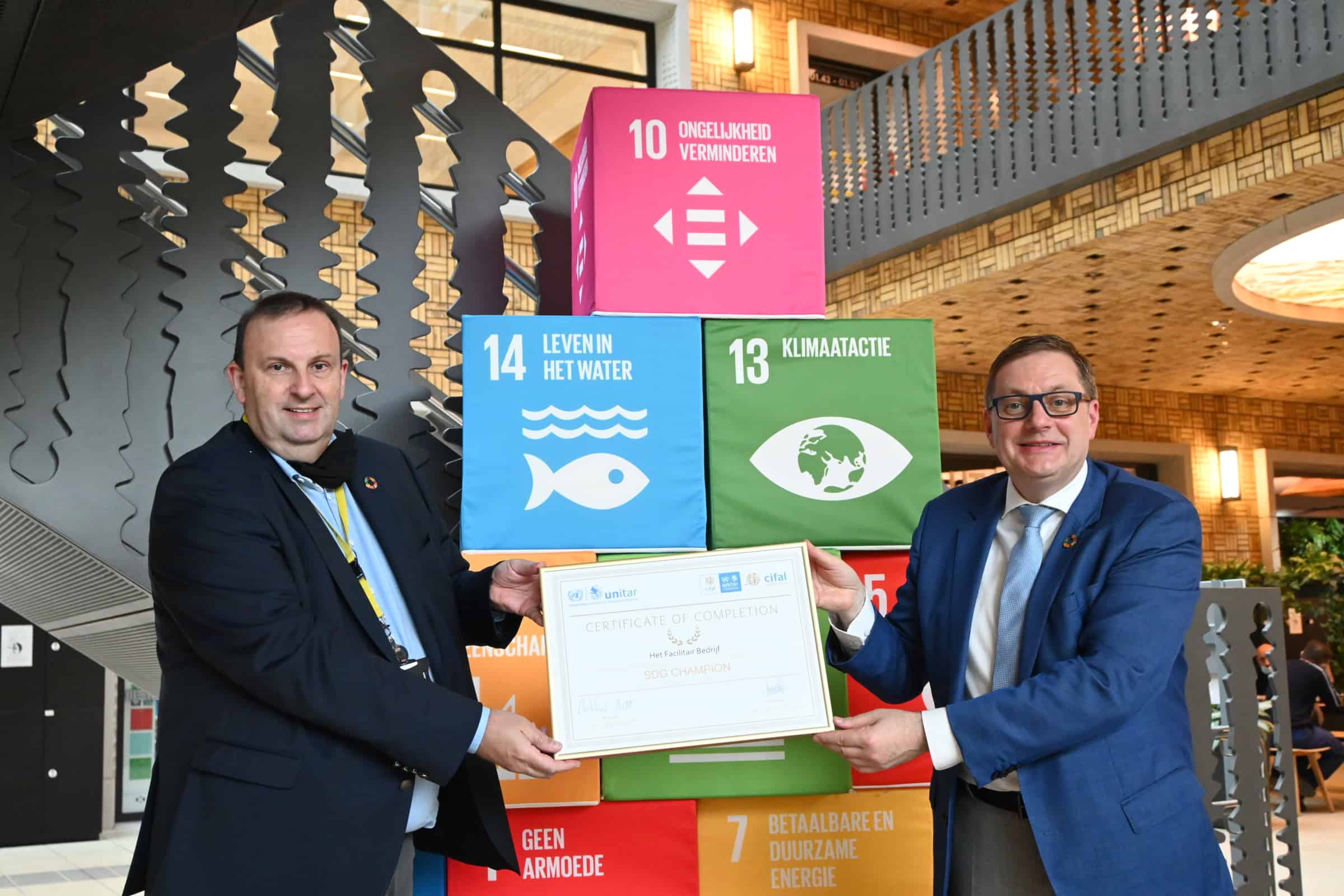 On Thursday 8 October 2020, the Agency for Facility Operations of the Flemish Government was awarded the certificate of ‘SDG Champion’ by Nikhil Seth, Executive Director of UNITAR and UN Assistant Secretary-General.