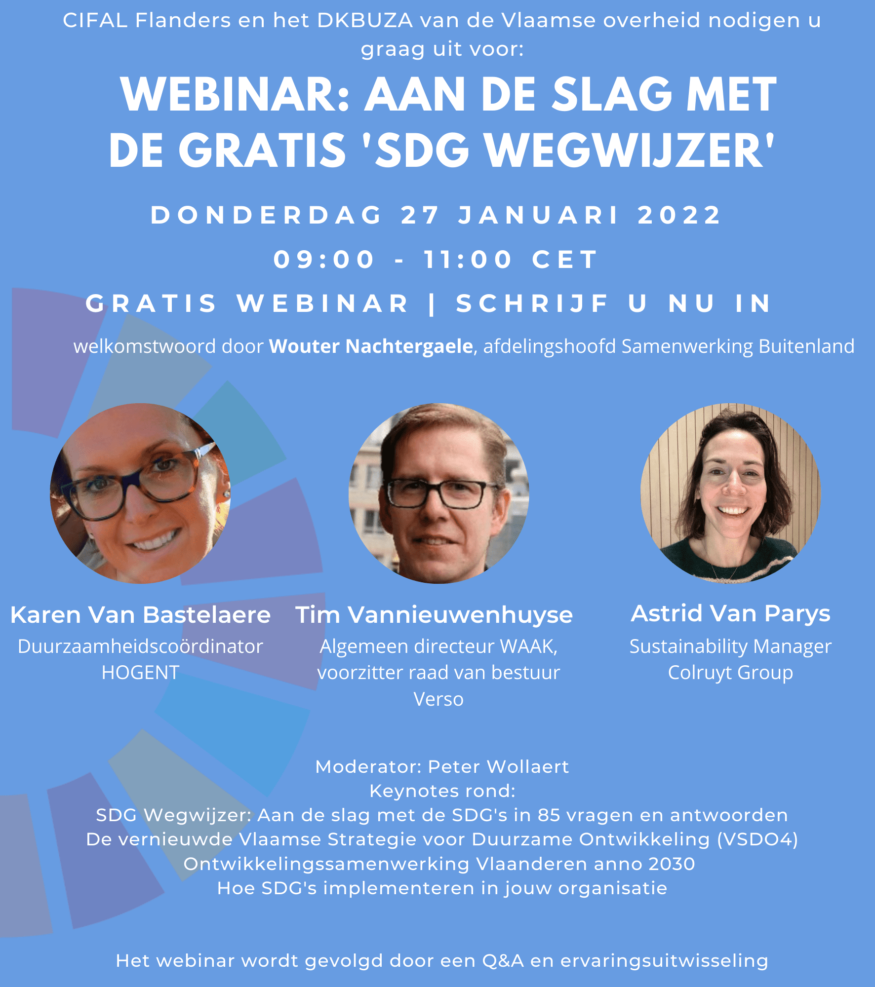Op donderdag 27 januari van 09u00-11u00 organiseert CIFAL Flanders in samenwerking met het Departement Kanselarij en Buitenlandse Zaken (DKBUZA) van de Vlaamse overheid het gratis SDG Wegwijzer webinar.