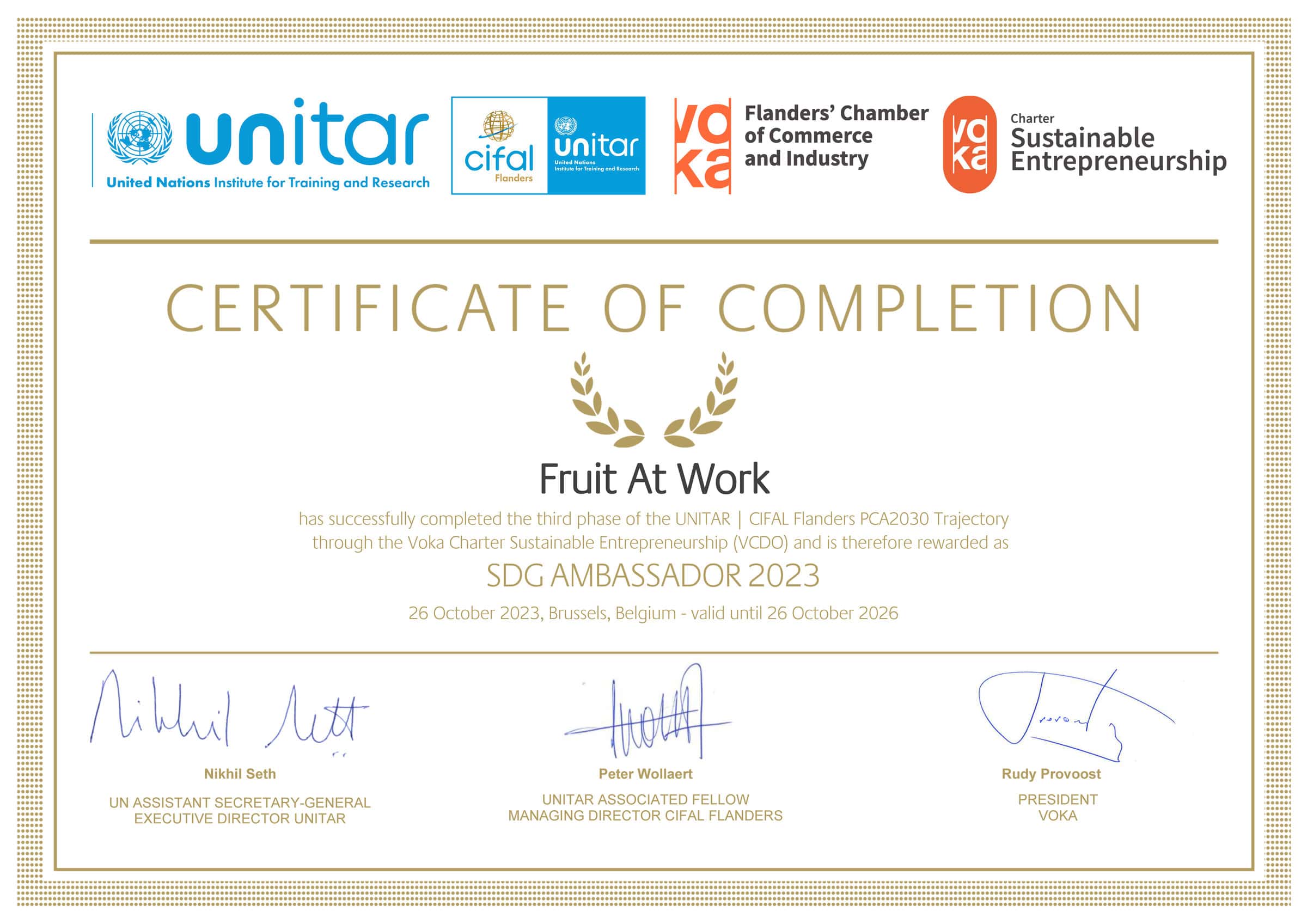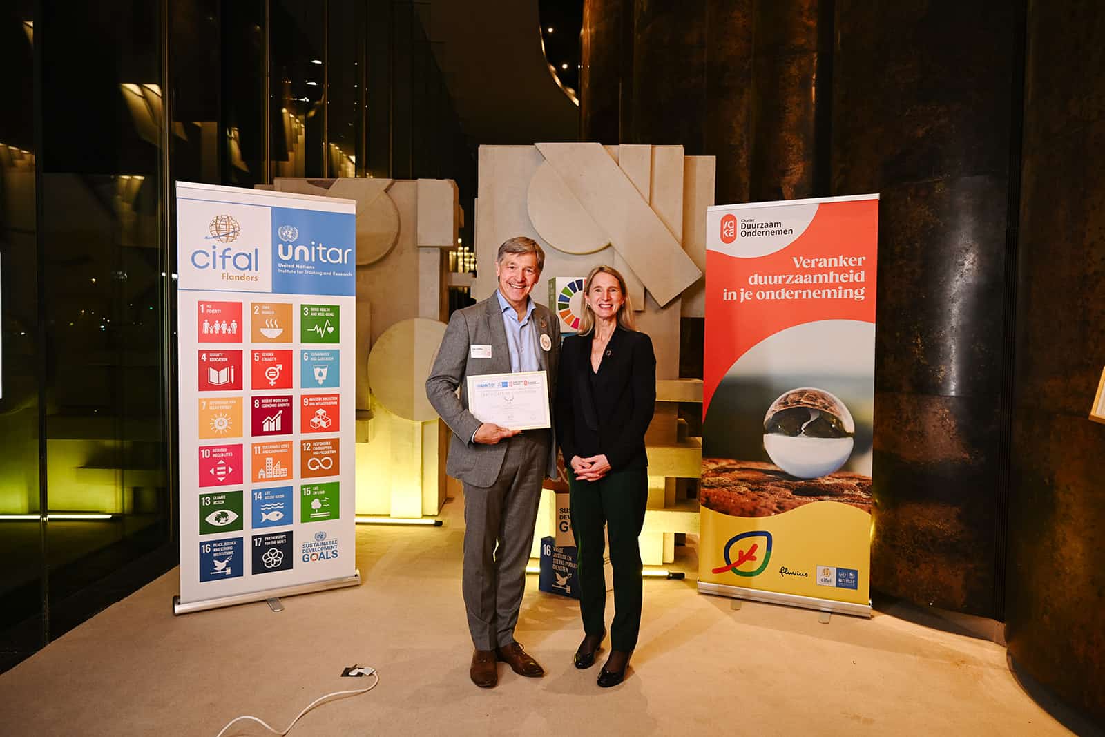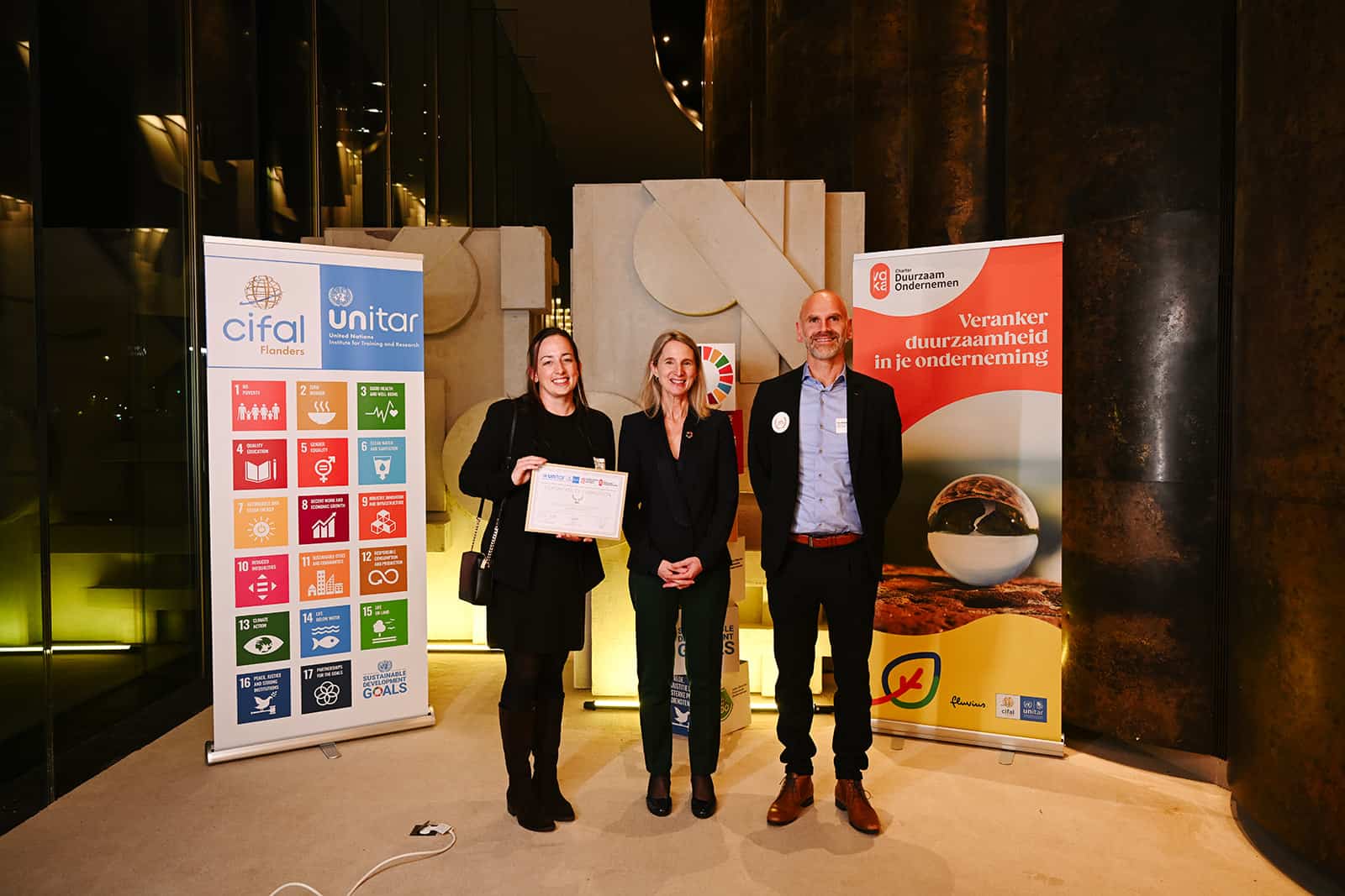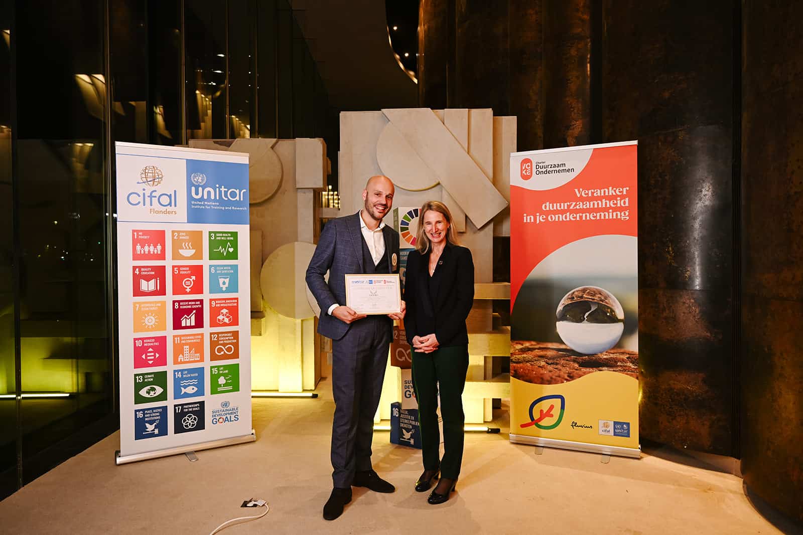 Flanders now has 4 companies that can call themselves SDG Ambassadors: Elep (industrial producer of envelopes and labels, Lommel), DNS Belgium (domain name administrator, Heverlee), Fruit at work (workplace fruit boxes, Zonhoven), LRM (Limburg investment company, Hasselt). These are companies that have implemented change initiatives for at least 6 years related to various of the 17 Sustainable Development Goals (SDGs) of the United Nations.