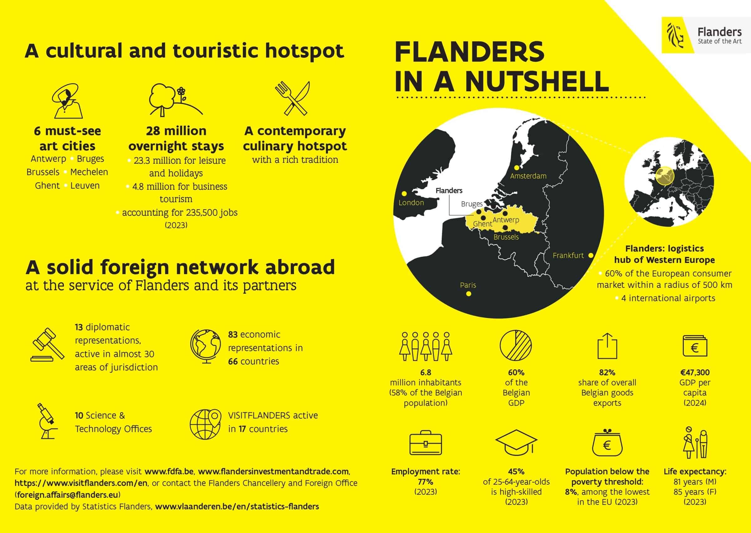 The Flanders in a Nutshell 2024 brochure offers a snapshot of Flanders as a dynamic, outward-looking region at the heart of Europe. With 6.8 million inhabitants and contributing 60% of Belgium’s GDP, Flanders plays a leading role both nationally and internationally.