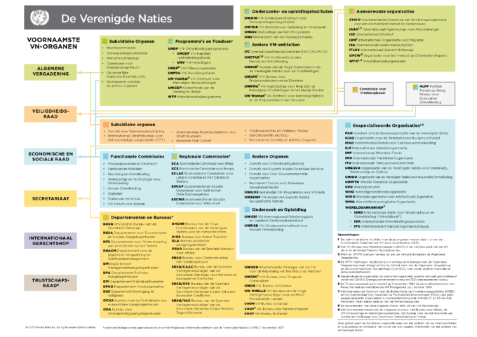 In recent years, a lot of (structural) changes have happened within the UN. That is why it was necessary to issue a new system card with an overview of all UN bodies and their interconnections. Please find the English and Dutch version below: