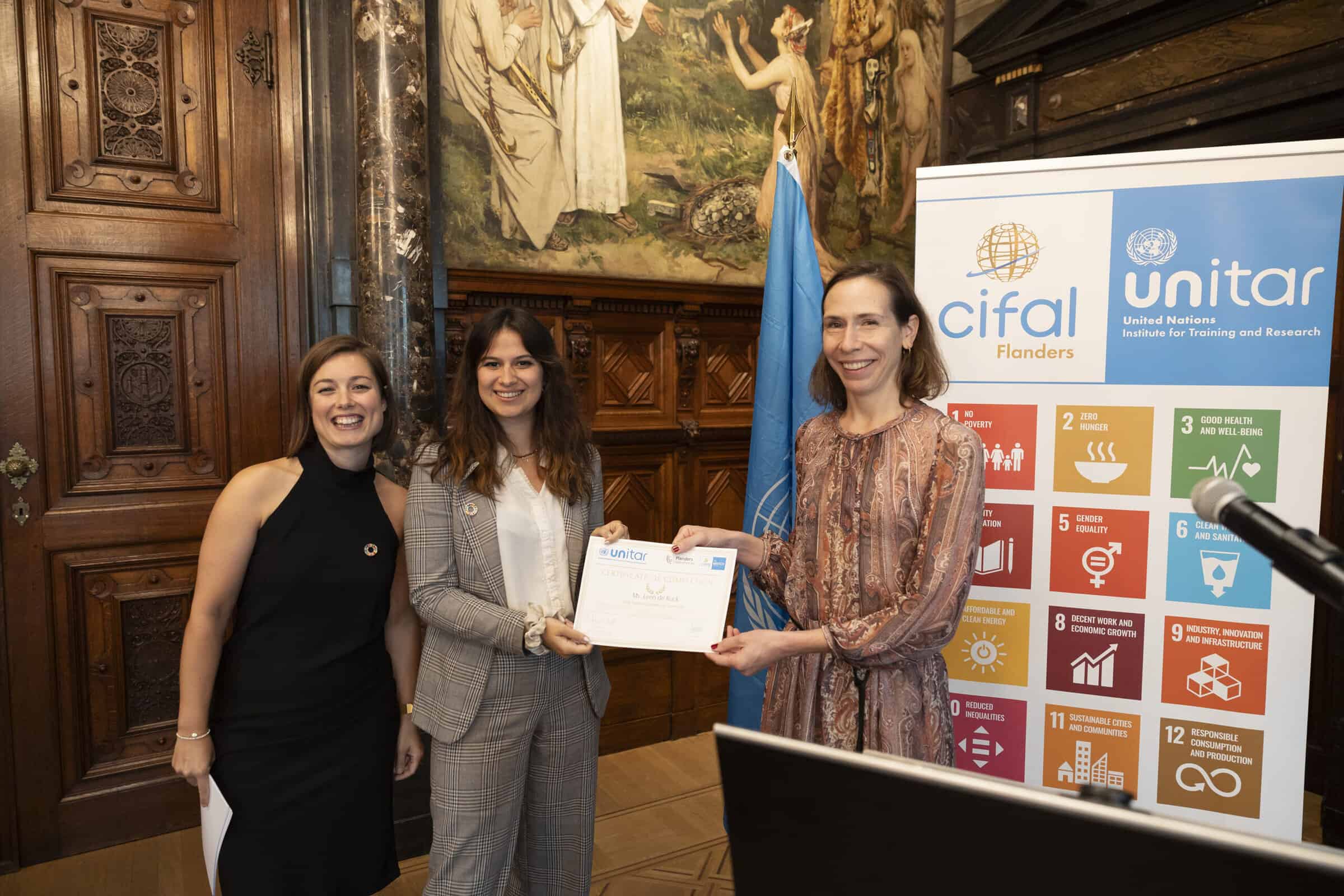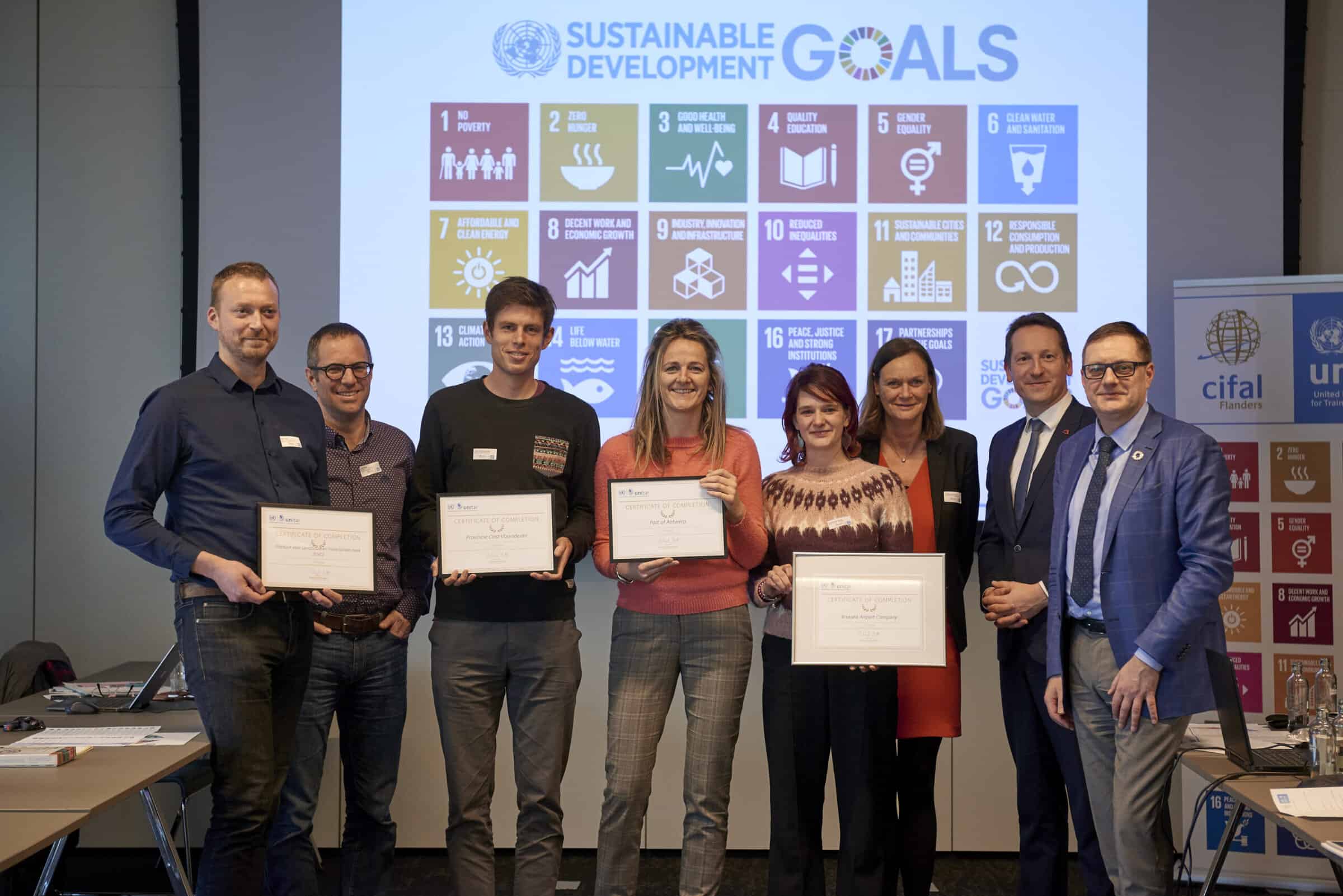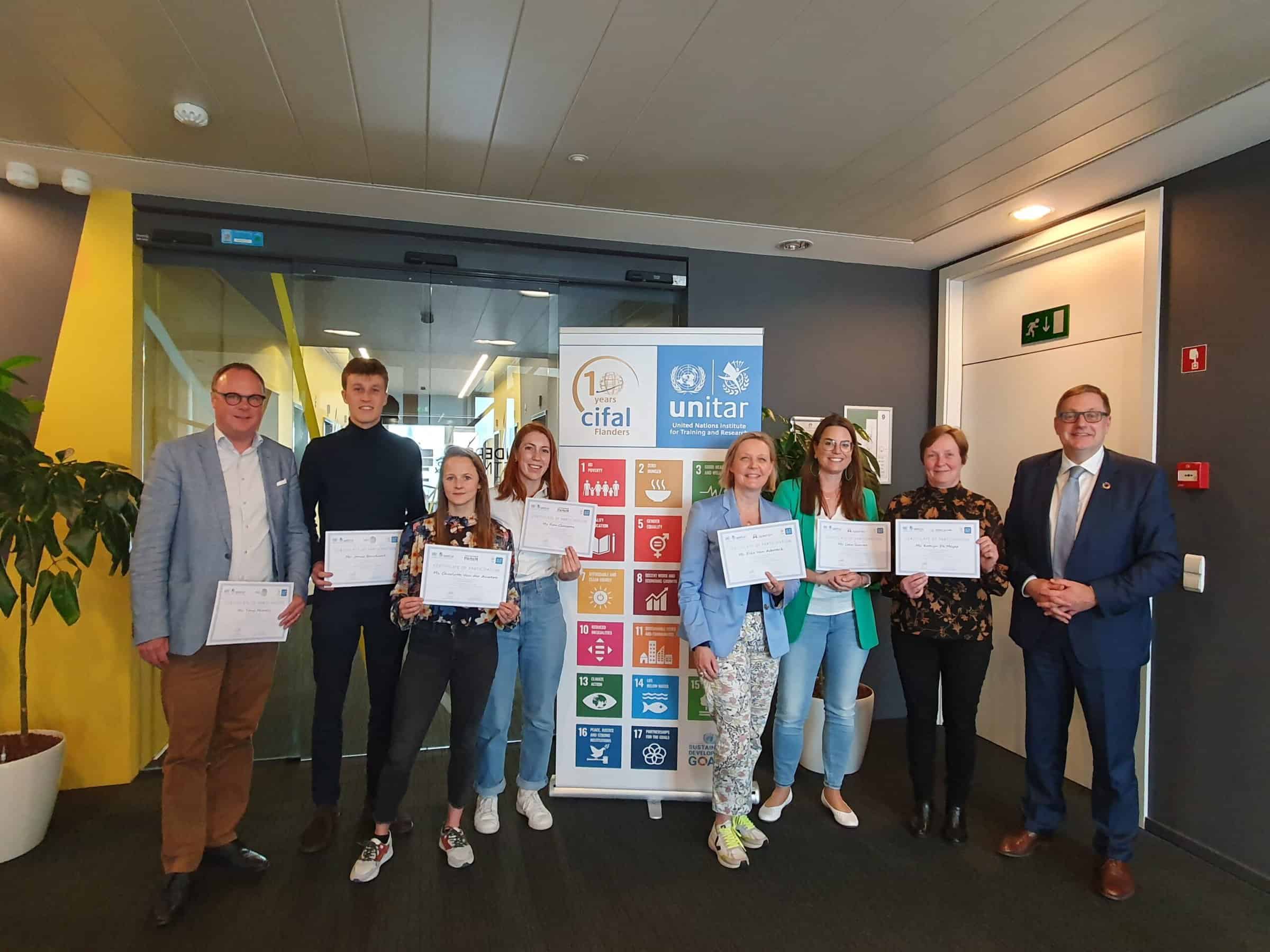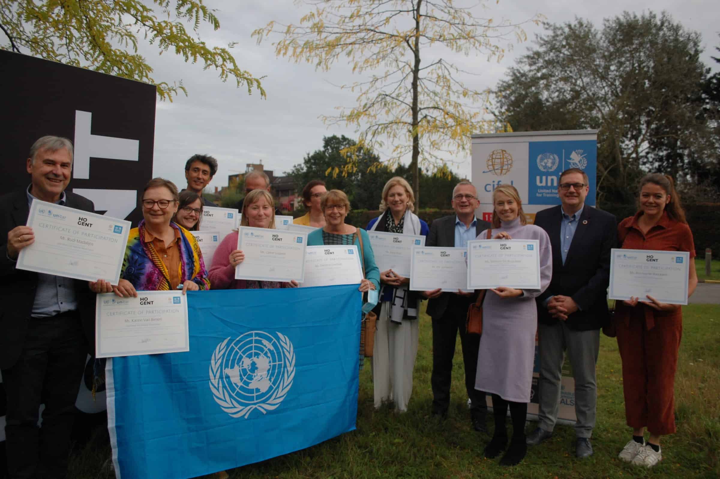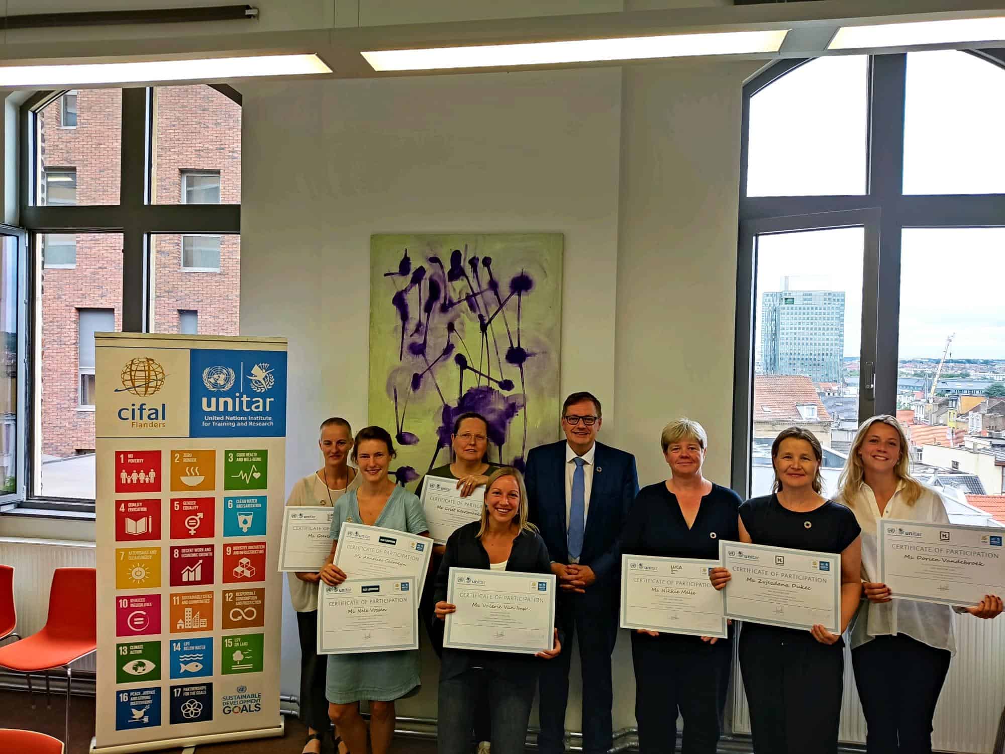 Participants who complete multiple SDG training and coaching session can obtain a UNITAR Certificate of Participation. These certificates are awarded to participants of the SDG Bootcamp, the SDG Masterclass and the micro degree Sustainability Coach at HOGent.